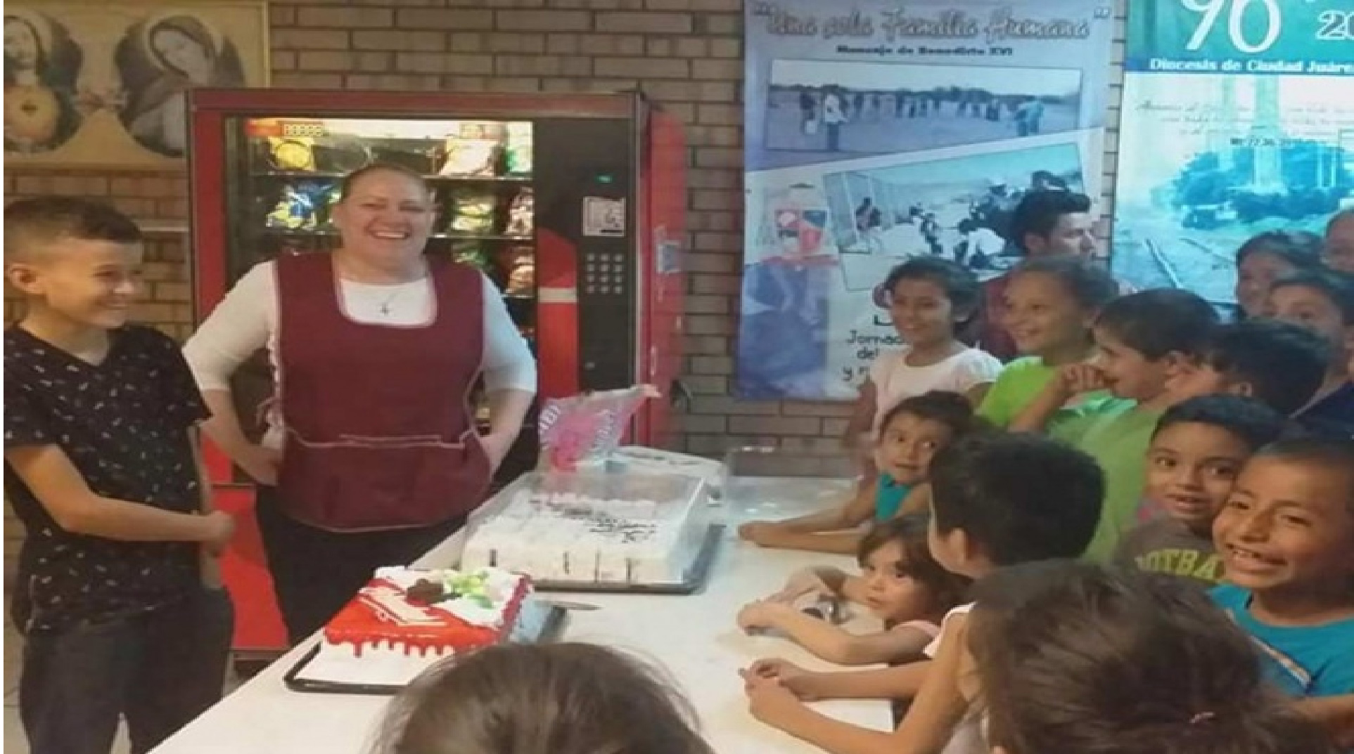 Voluntarios y las trabajadoras de la Casa del Migrantes, A.C. realizaron el festejo infantil, con refrescos, pastel y dulces, además de otros platillos.