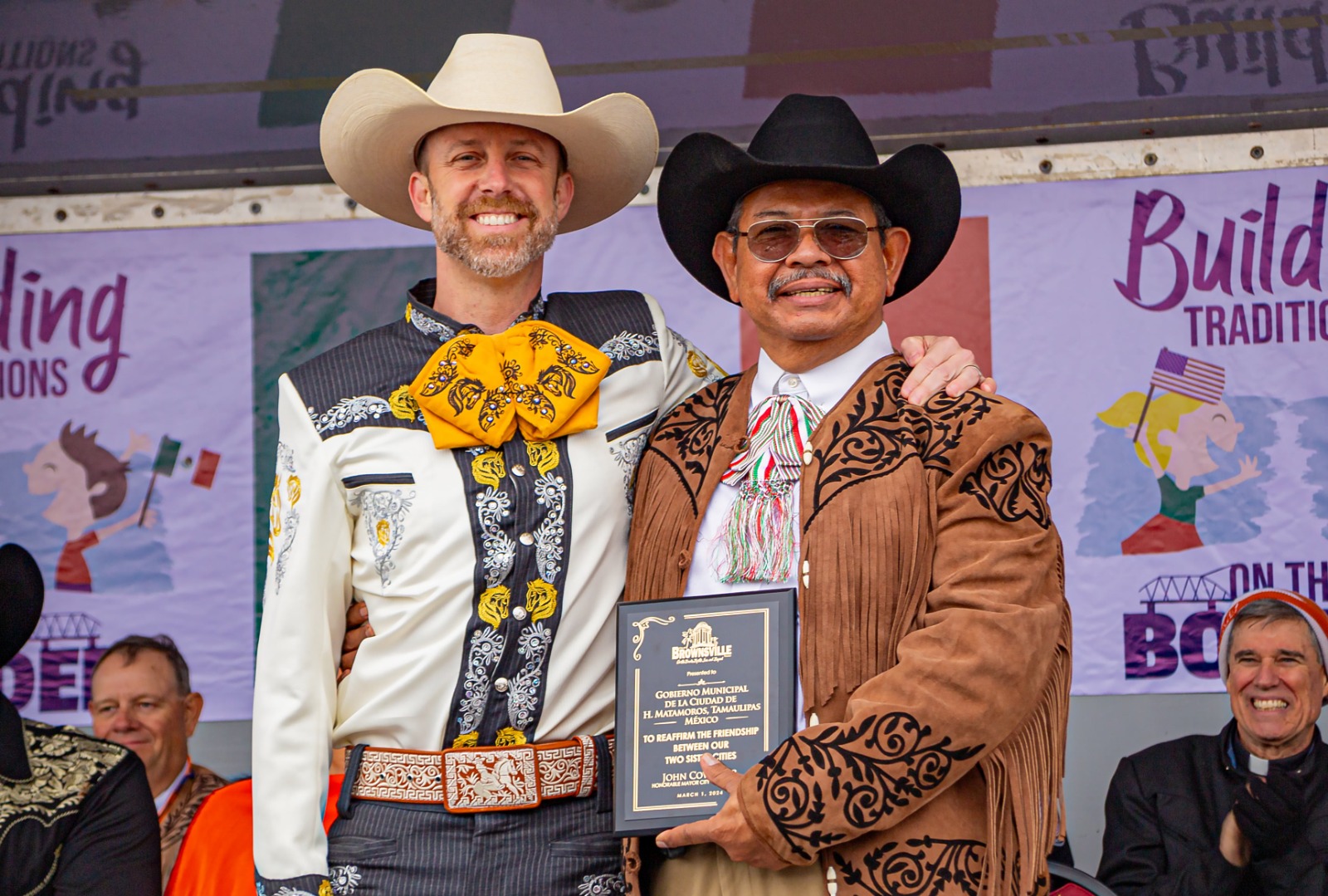 Las autoridades locales de Matamoros y Brownsville, Texas también intercambiaron regalos, y a su vez, entregaron obsequios a los invitados de las Fiestas del Charro y de las Fiestas Mexicanas.