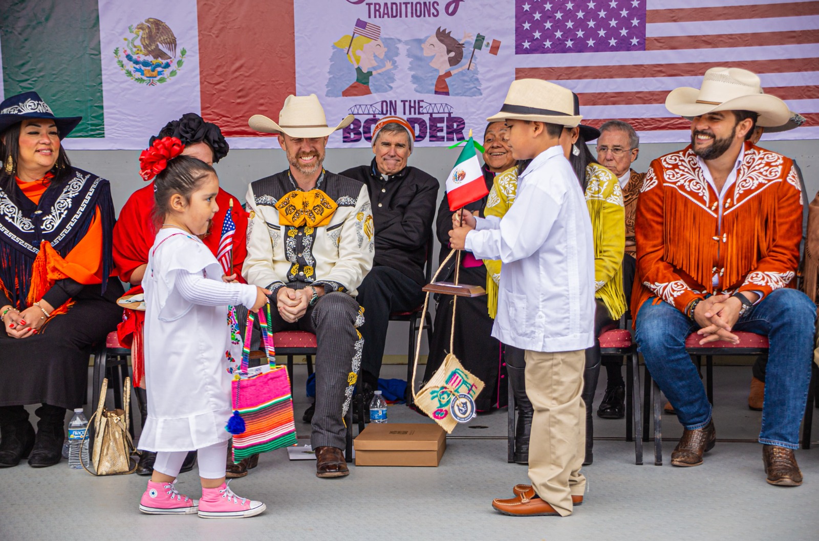 Los niños de las dos ciudades fronterizas que representan el presente y el futuro, intercambiaron banderas de los dos país y algunos regalos como símbolo de la estrecha relación entre México y Estados Unidos.