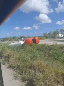 Atendiendo las instrucciones del Presidente Municipal, Mario Alberto López Hernández, a través del Secretario del Ayuntamiento, Carlos Ballesteros Gálvez se tuvo una oportuna intervención del Grupo Interinstitucional Matamoros, permitiendo concluir con éxito las labores realizadas para levantar una pipa cargada con 16 mil litros de etileno que se volcó en un canal de desagüe ubicado en la Avenida Emilio Portes Gil y Pedro Cárdenas.