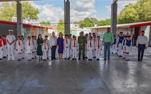 Como ya es una tradición, la ceremonia cívica se realizó en la escuela primaria “Héroes de la Independencia”, acto en donde con la representación del alcalde Mario Alberto López Hernández asistió la titular de la SECUDE, Genoveva Hi González.