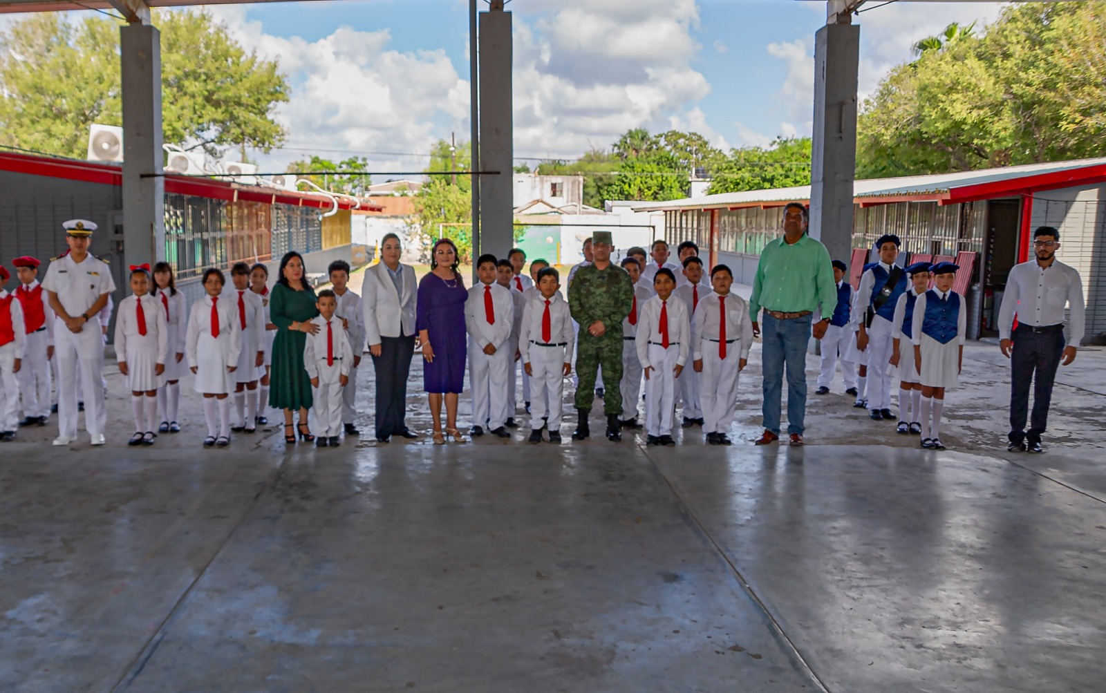 A nombre del Alcalde Mario Alberto López Hernández, Hi González agradeció a los directivos del plantel, a los maestros y padres de familia por su gran compromiso de sembrar en la niñez el amor a la patria.