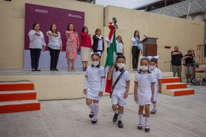 La ceremonia realizada en el Jardín de Niños “Rita Padrón González” ubicado en la colonia Alianza, fue encabezada por Genoveva Hi González, representante personal del Alcalde Mario Alberto López Hernández, acto que contó con la presencia de autoridades de la Jefatura del sector 4, de la Zona 14 de Preescolar y de la directora del Plantel, María Esther Ramos Olguín.