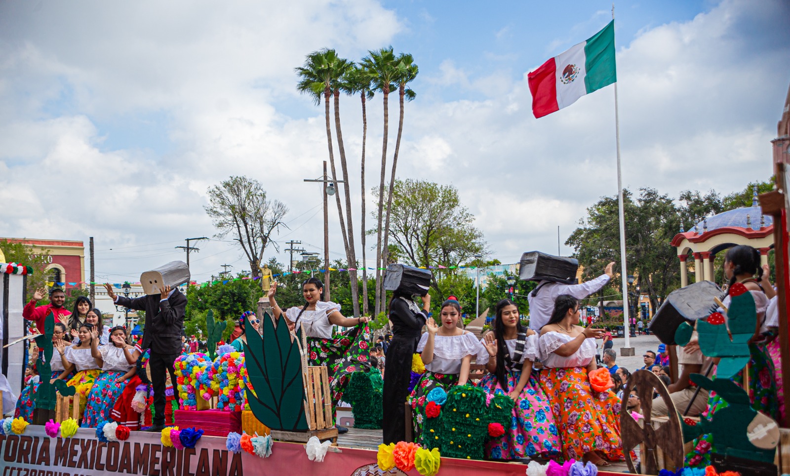 Carros alegóricos, bandas de música de instituciones de nivel medio superior y superior, así como las tablas rítmicas ejecutadas por los estudiantes participantes, fueron aplaudidas por cientos de familias concentradas a lo largo de la calle Sexta.