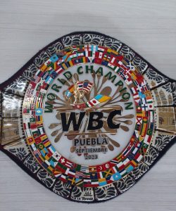 Este cinturón fue realizado por Angélica Moreno y Matilde Juárez, poblanas que tardaron alrededor de dos meses en elaborarlo. En el centro de la pieza se destaca en mármol el nombre de «World Champion», banderas de diferentes países, así como el mes de la pelea y el nombre de Puebla.