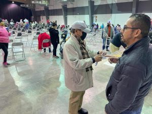 En el Centro de Convenciones Mundo Nuevo, Cerezo Ruiz también hizo entrega de algunos insumos a la Subdelegada de Programas Federales, como cafeteras, vasos desechables, pan y algunos otros artículos.El Alcalde Interino manifestó que las condiciones meteorológicas esta mañana registraron los 7 grados centígrados, por este motivo añadió, es importante que los adultos mayores y las personas con discapacidad que acuden a cobrar sus pensiones, reciban un cafecito caliente, en tanto les toca su turno.Felicitó a la funcionaria federal y al equipo de trabajo que la acompaña porque con mucho orden y esmero atienden a los abuelitos, cumpliendo el compromiso del Presidente Andrés Manuel López Obrador, de que en su gobierno primero son los pobres.