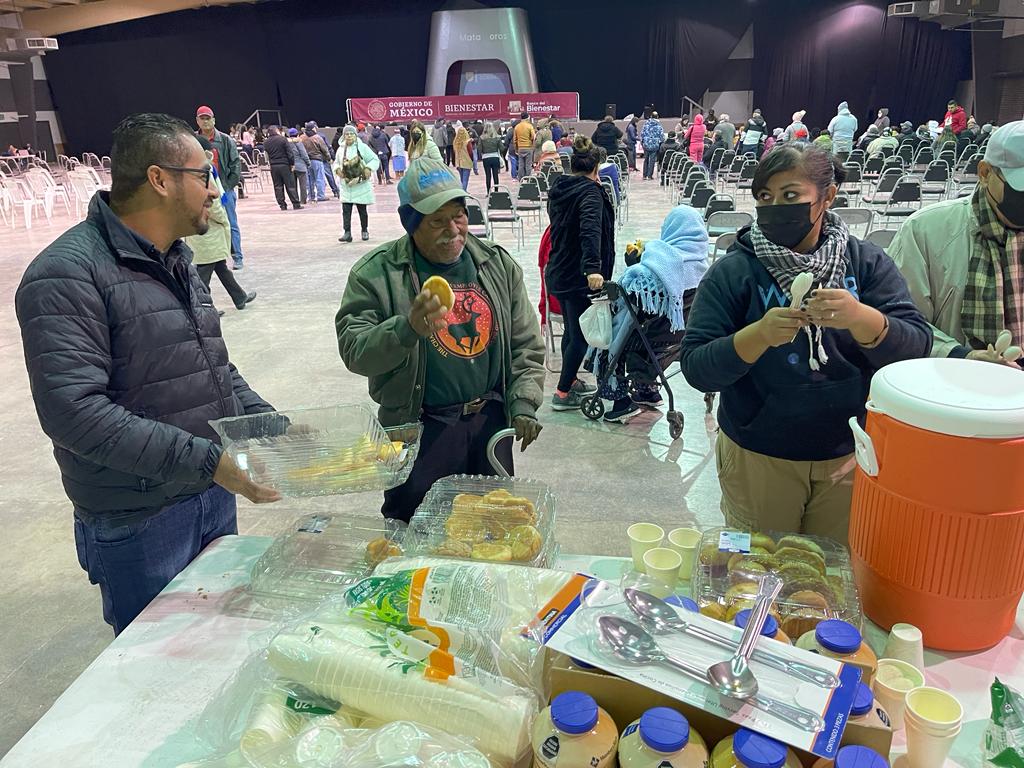 En el Centro de Convenciones Mundo Nuevo, Cerezo Ruiz también hizo entrega de algunos insumos a la Subdelegada de Programas Federales, como cafeteras, vasos desechables, pan y algunos otros artículos.El Alcalde Interino manifestó que las condiciones meteorológicas esta mañana registraron los 7 grados centígrados, por este motivo añadió, es importante que los adultos mayores y las personas con discapacidad que acuden a cobrar sus pensiones, reciban un cafecito caliente, en tanto les toca su turno.Felicitó a la funcionaria federal y al equipo de trabajo que la acompaña porque con mucho orden y esmero atienden a los abuelitos, cumpliendo el compromiso del Presidente Andrés Manuel López Obrador, de que en su gobierno primero son los pobres.