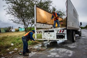 Son varias toneladas de basura las que han sido extraídas de los drenes y levantadas en las bocas de tormenta, motivo por el cual, las autoridades de Protección Civil exhortan a la población a no tirar basura en las calles de la ciudad y principalmente no sacar contenedores o bolsas de desechos cuando se registran precipitaciones pluviales.