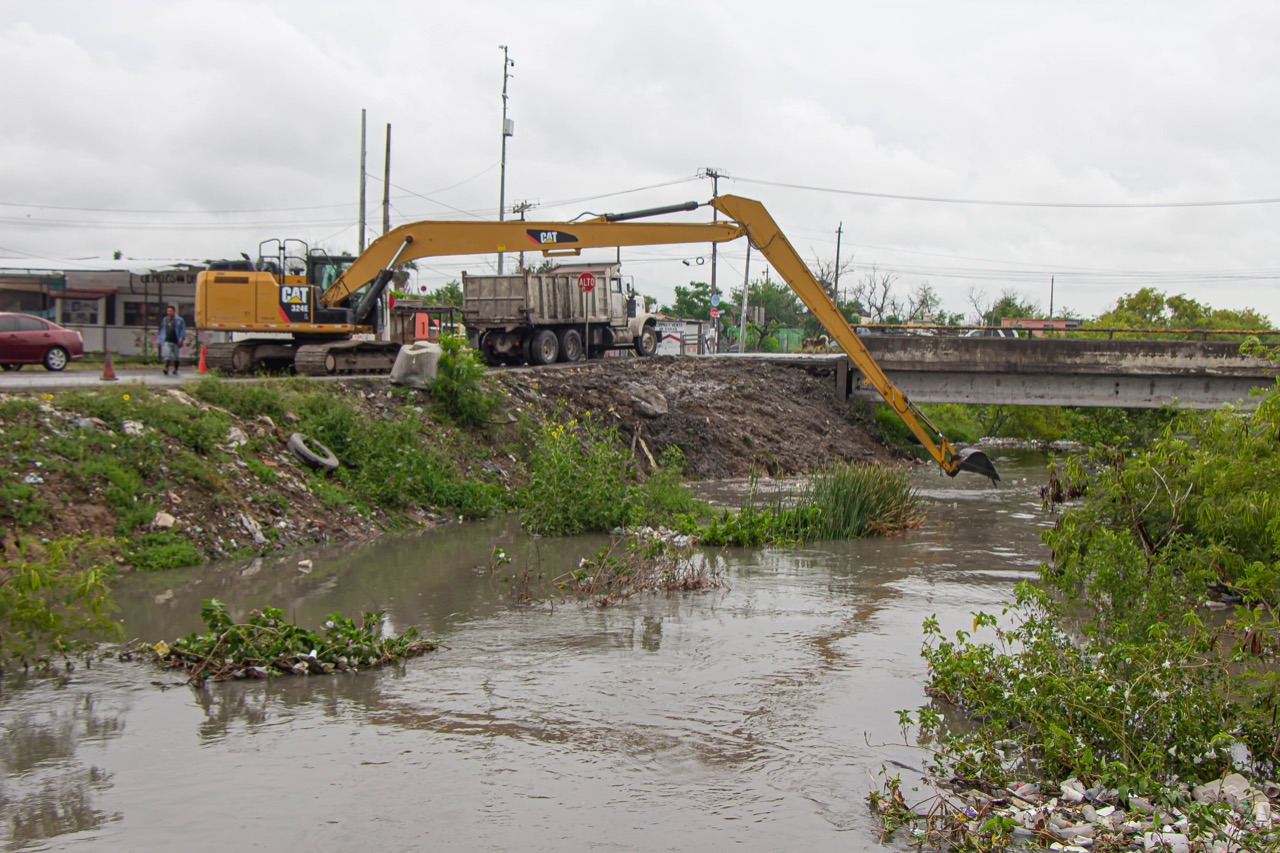 Mediante la utilización de retroexcavodoras, se trabaja en los drenes que presentan los citados taponamientos y que han provocado la anegación en colonias consideradas como bajas que se ubican principalmente al sur oriente de la ciudad.