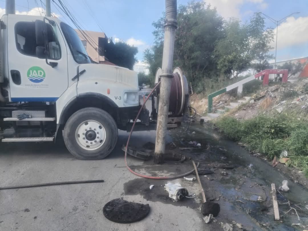 Gobierno Municipal de Matamoros y la Junta de Aguas y Drenaje, realizaron trabajos en conjunto de limpieza y desazolve en drenaje de la colonia Buenavista, específicamente en la calle 21 y Laguna Jasso.