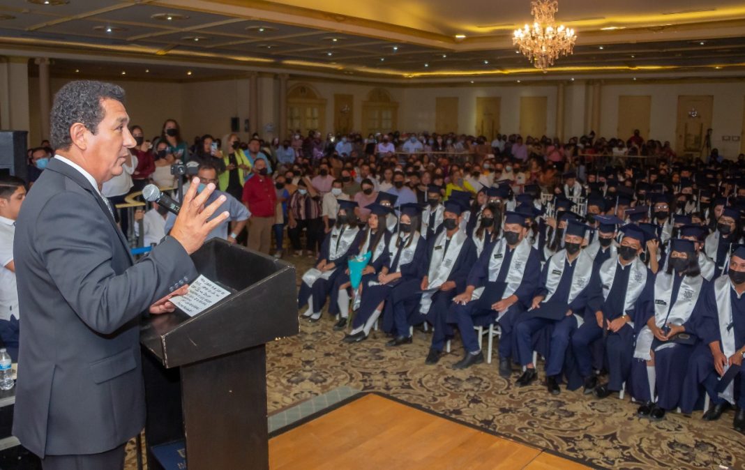 El alcalde Mario Alberto López Hernández asistió como invitado de honor a la graduación de la generación 2019-2022 de la preparatoria “Lic. y Gral. Juan José de la Garza”, en donde convocó a los jóvenes graduados a que continúen estudiando, a no claudicar ante las adversidades, a seleccionar muy bien a sus amigos “y el día de mañana puedan decir a sus padres, misión cumplida”.