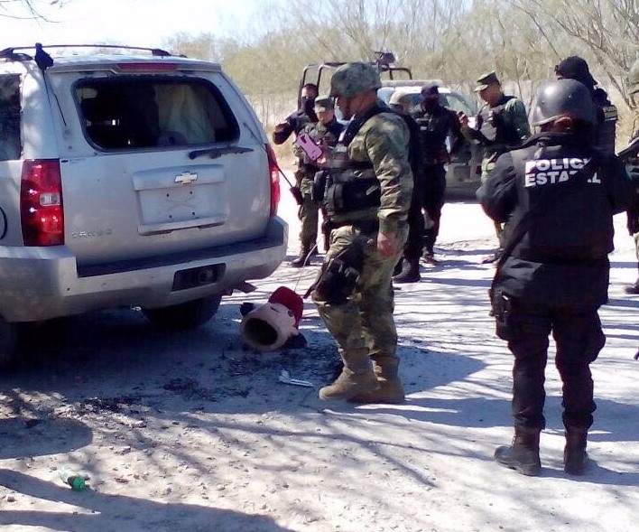 Durante un recorrido de seguridad y vigilancia por la Carretera Ribereña y a la altura de la colonia Rancho Grande, los policías estatales fueron agredidos por cuatro sujetos que se desplazaban a bordo de una camioneta Chevrolet Tahoe color arena, por lo que en defensa de sus vidas repelieron el ataque.