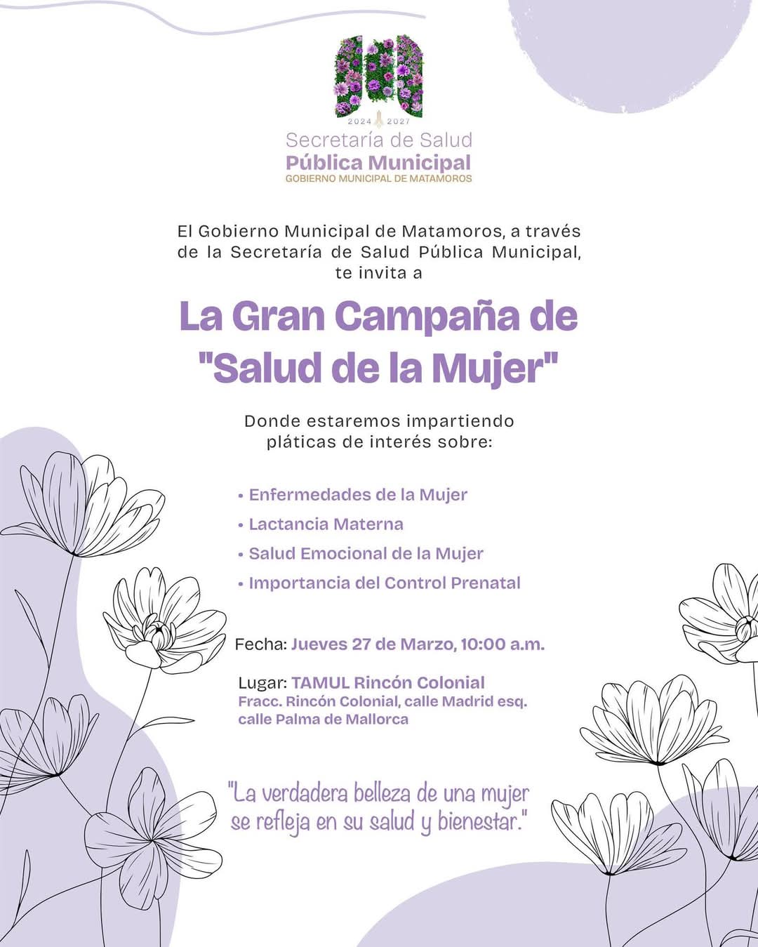 La salud es bienestar, y como parte de la Gran Campaña de Salud de la Mujer, se llevará a cabo una jornada informativa sobre diversos temas de interés.