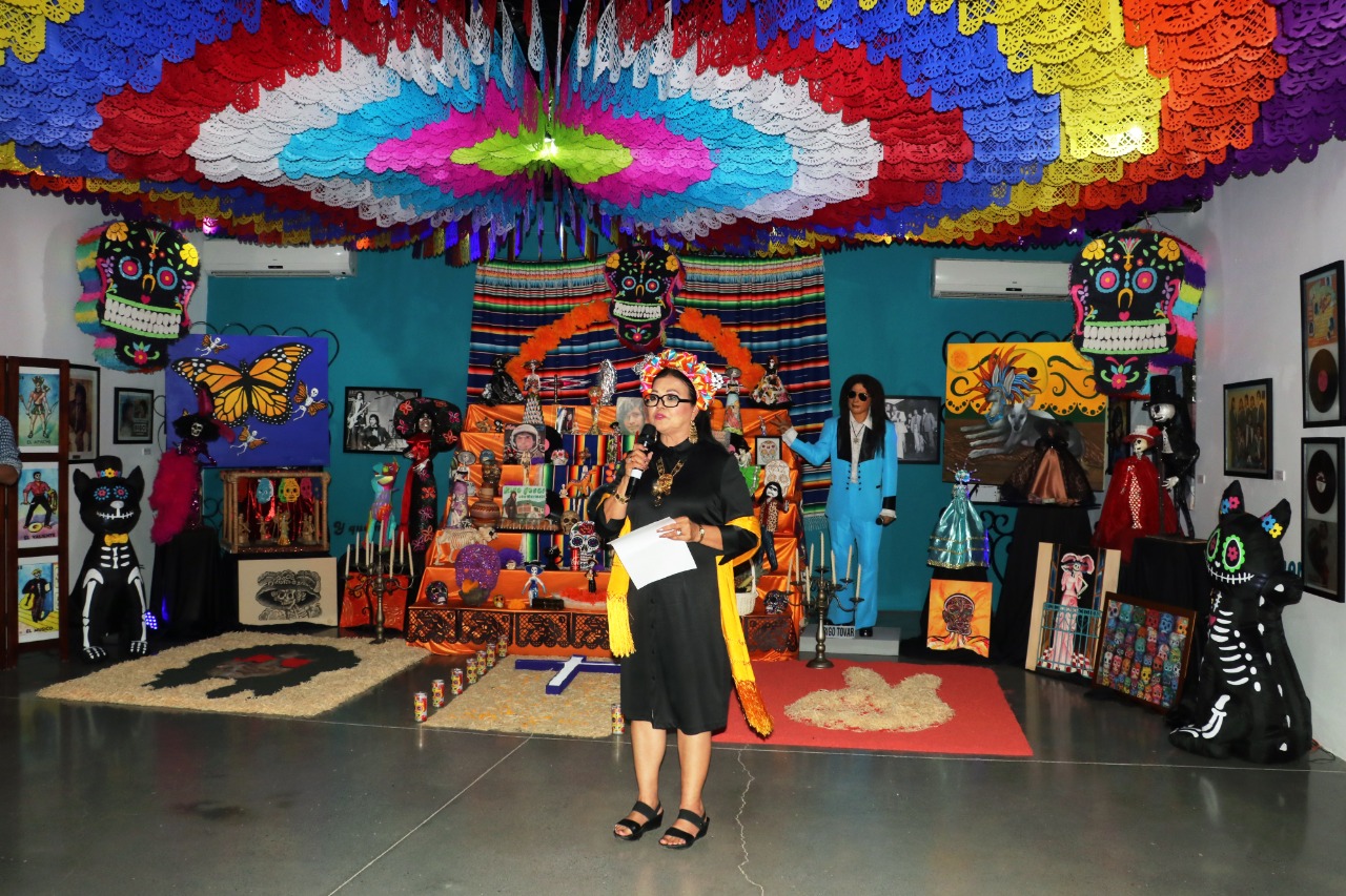 El Gobierno de Matamoros en el marco del Festival Binacional de la Huesuda 2022, presentó el altar de muertos en honor de Rigo Tovar.