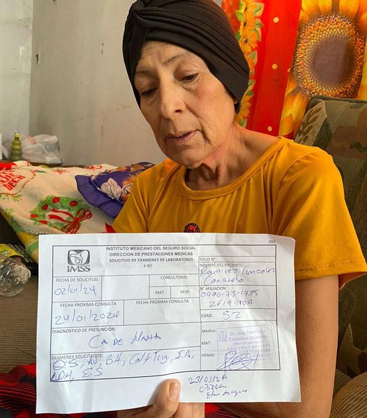 Consuelo Ramirez González de 52 años es una señora quien a principios del 2021 presento un dolor en su pecho izquierdo, al ir al seguro le comentaron que solo era un quiste