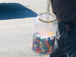 Alejandro un gran ejemplo de persistencia y que a pesar de su situación no se da por vencido, si no que cada día sale a la calle a trabajar vendiendo sus chicles y dulces para sobrevivir.