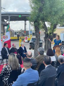 En la ceremonia realizada en el Puente Internacional “Gateway” conocido como Puente Nuevo, Ballesteros Gálvez dirigió un discurso en presencia de autoridades de ambos lados de la frontera, en donde destacó que la relación entre los dos países se fortalece día a día, porque los desafíos de un mundo globalizado se enfrentan juntos como región.