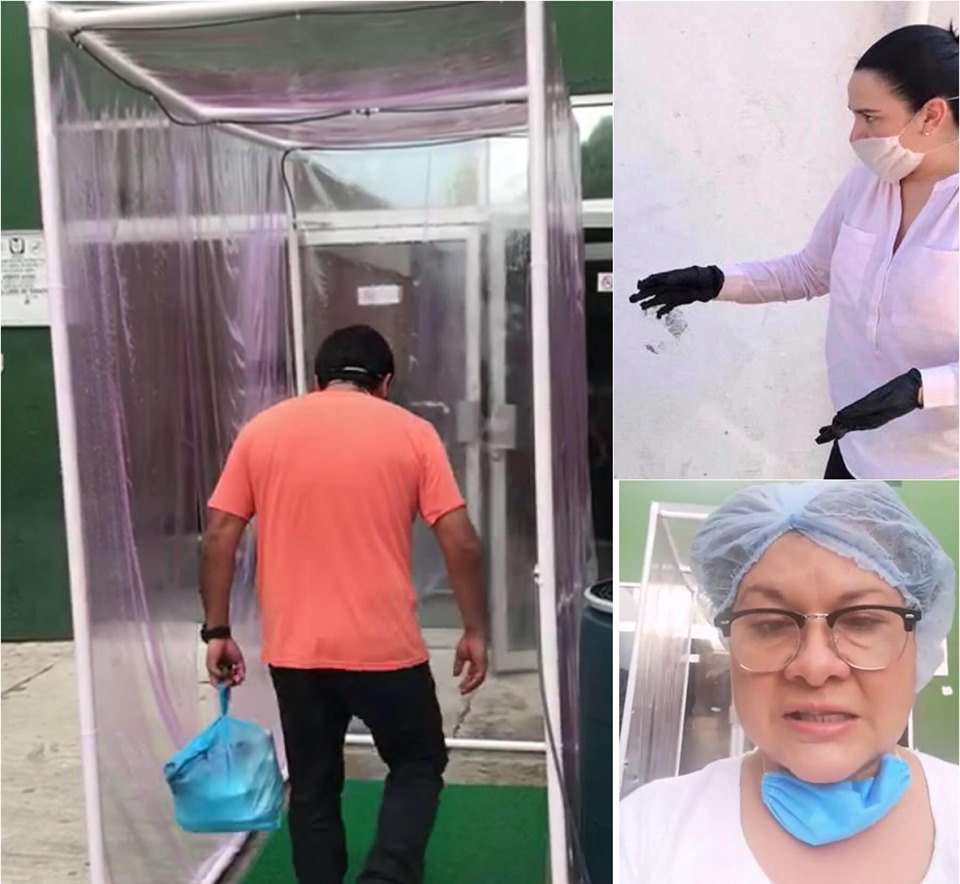 Junto a la frágil estructura,  la enfermera Sagrario Ortiz, condeno que la legisladora se quisiera lucir al mandar un supuesto arco elaborado con tubos PVC y un transparentoso plástico y del que no se desprendía ninguna químico sanitizante.