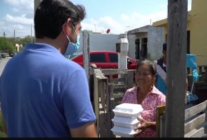 Con cubrebocas, pero sin guantes, el diputado Héctor invitado por Ada, una panista del sector, puso a cada platillo dos tortillas y salió a repartir algunos, siempre condicionando a que los beneficiarios permitieran que se les tomara video para luego subirlo a sus redes sociales.