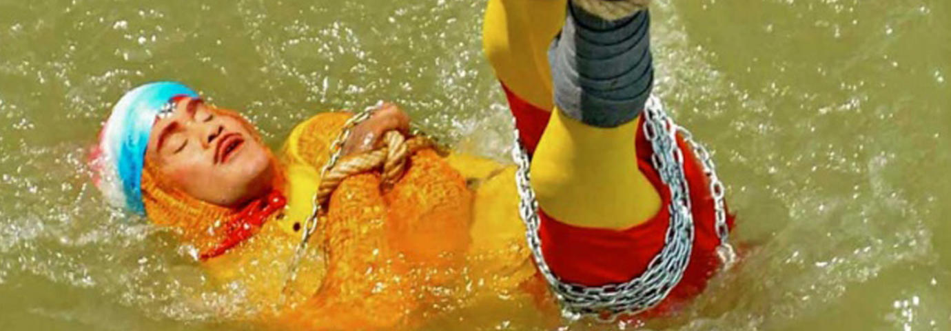 Chanchal Lahiri, conocido por su nombre artístico ‘Jadugar Mandrake’ (El mago Mandrake), se lanzó al río desde una grúa frente a miembros de su familia, los medios de comunicación y la policía, quienes estaban en las orillas.