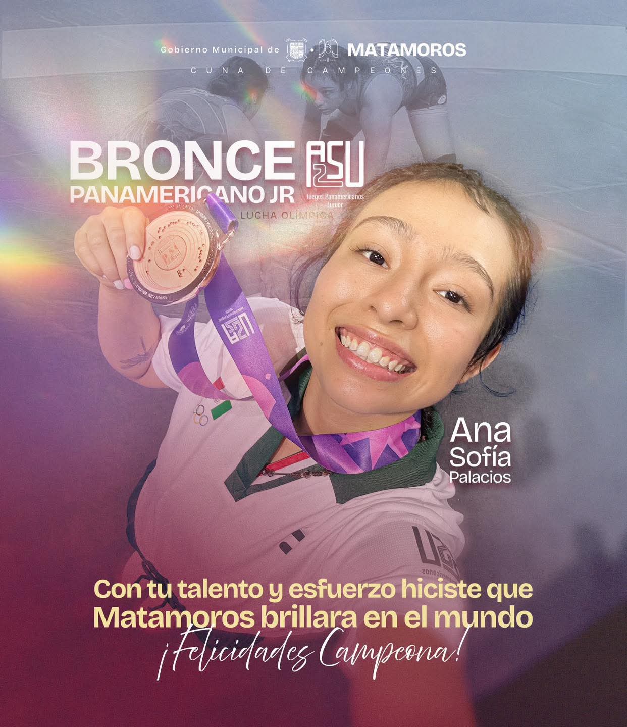 H. Matamoros, Tamaulipas. – El gobierno municipal de Matamoros, encabezado por Beto Granados, expresó una calurosa felicitación a la joven atleta Ana Sofía Palacios, quien puso en alto el nombre de la ciudad al obtener la medalla de bronce en Lucha Olímpica durante los Juegos Panamericanos Junior. Este logro consolida su esfuerzo y la posiciona como una de las grandes promesas del deporte nacional.