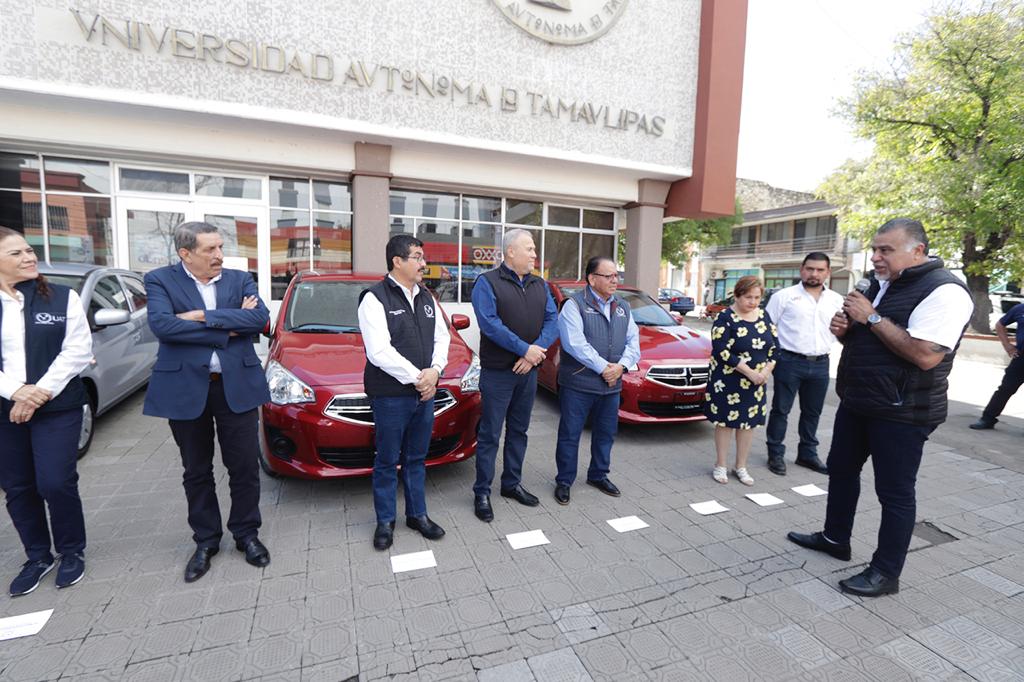 El MVZ Dámaso Leonardo Anaya Alvarado, rector de la Universidad Autónoma de Tamaulipas (UAT), presidió la entrega de tres vehículos que fueron sorteados por la institución con motivo de la conmemoración del 50 aniversario del Sindicato Único de Trabajadores (SUTUAT) y los recientes festejos navideños en beneficio de todo el personal sindicalizado de la casa de estudios.