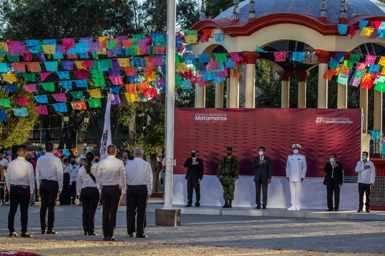 La ceremonia cívica se realizó en la plaza principal “Miguel Hidalgo” la cual se encuentra decorada con motivos alusivos a una de las tradiciones milenarias de este país, como lo es el “Día de Muertos”; luce llena de color, con un monumental tapete que anuncia la realización del Festival de la Huesuda 2021 y una exposición de alebrijes.