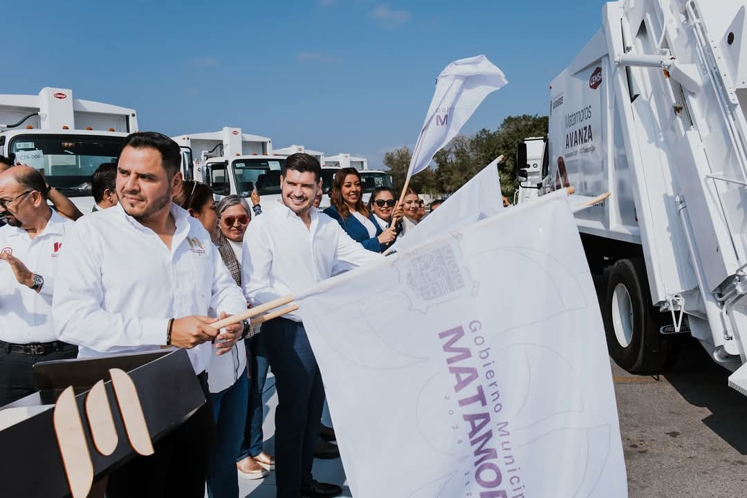 Matamoros, Tamaulipas. El alcalde Alberto Granados encabezó esta tarde la entrega de 20 nuevos camiones compactadores a la Dirección de Limpieza Pública Municipal, fortaleciendo la capacidad de recolección en las 530 colonias de la ciudad. Con esta incorporación, la flota vehicular alcanza un total de 40 unidades en operación, distribuidas en 25 rutas en los tres turnos de servicio.