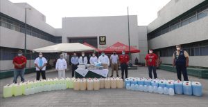 Con la representación del alcalde Mario Alberto López Hernández, la secretaria de Salud Municipal, Nidia Maldonado Ruiz entregó los beneficios entre ellos, contenedores con cloro, con jabón líquido, gel antibacterial, cajas con guantes, paquetes de cubrebocas, así como también una importante dotación de lentes goggles.