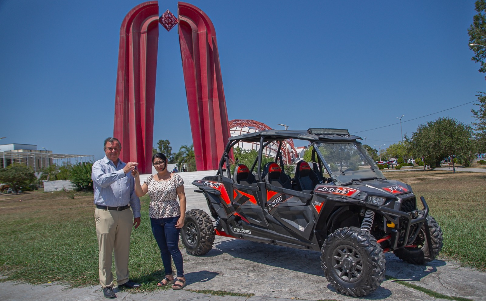 El Gobierno de Matamoros a través de la Secretaría de Fomento Económico y Turismo entregó un vehículo Razer a Anabel Ramírez Chapa, ganadora de la rifa entre amigos organizada en el marco del Torneo de Pesca Bicentenario realizado en El Mezquital el pasado 27 de Agosto del presente año.