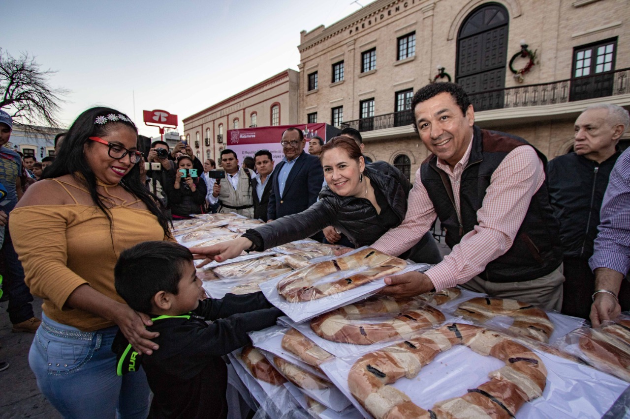 El Presidente Municipal de Matamoros, Mario Alberto López Hernández y su esposa Marsella Huerta de López compartieron la tradicional rosca de reyes con más de 2 mil 500 familias que se concentraron en la plaza principal “Miguel Hidalgo”.