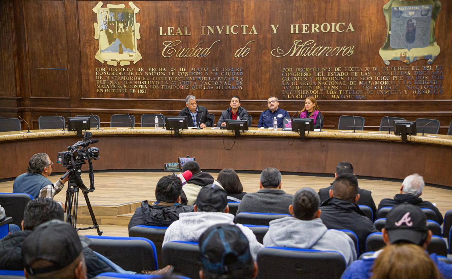 En la entrega de las pólizas de seguro, realizada en el auditorio Pedro Sáenz González de Presidencia Municipal, estuvieron presentes: Janeth Briseida García Santos, enlace municipal con la citada Congregación; Hugo Abelardo González Salinas, Presidente de la Federación Regional de Cooperativas Pesqueras, así como también Julián Garza Hernández, secretario Técnico en el Gobierno de Matamoros.