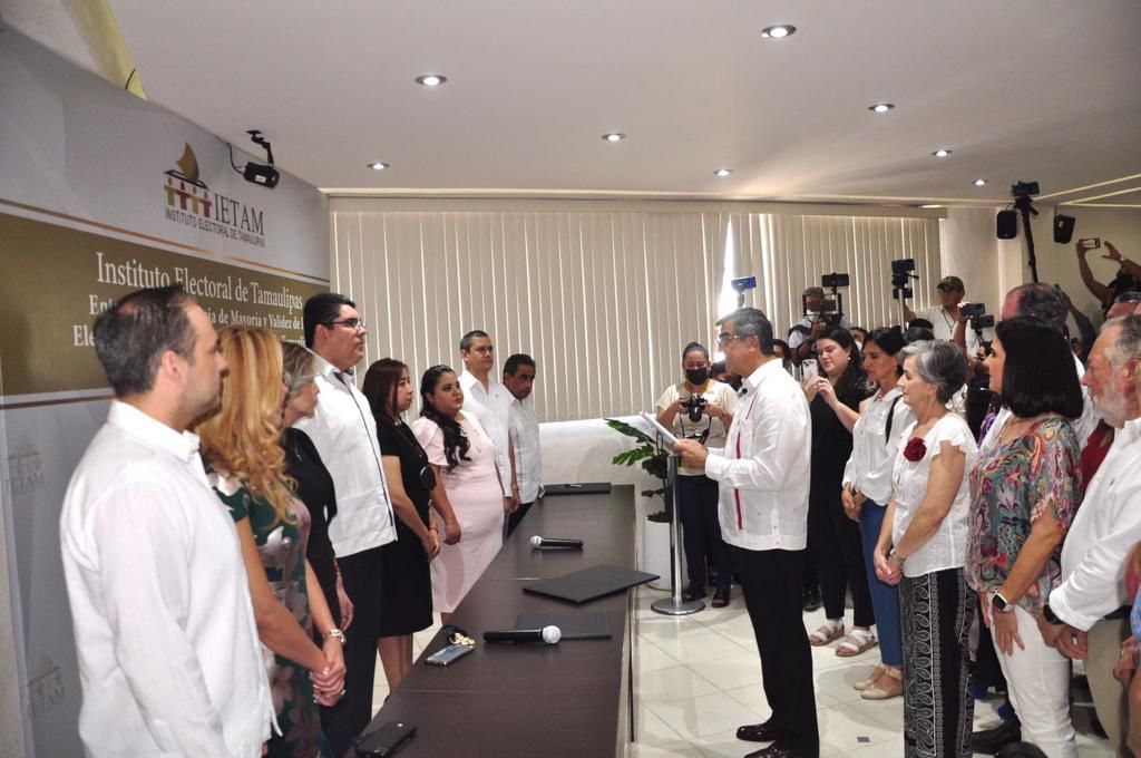 Tras recibir el documento que acredita la validez de la elección de manos del Consejero Presidente del Instituto Estatal Electotal, Juan José Ramos Charre, este sábado, el doctor Américo Villarreal aseguró que la voluntad del pueblo de Tamaulipas y el deseo de un cambio quedó expresado en las urnas, por lo que de inmediato convocó a la unidad, a la participación y a la reconciliación de los tamaulipecos.