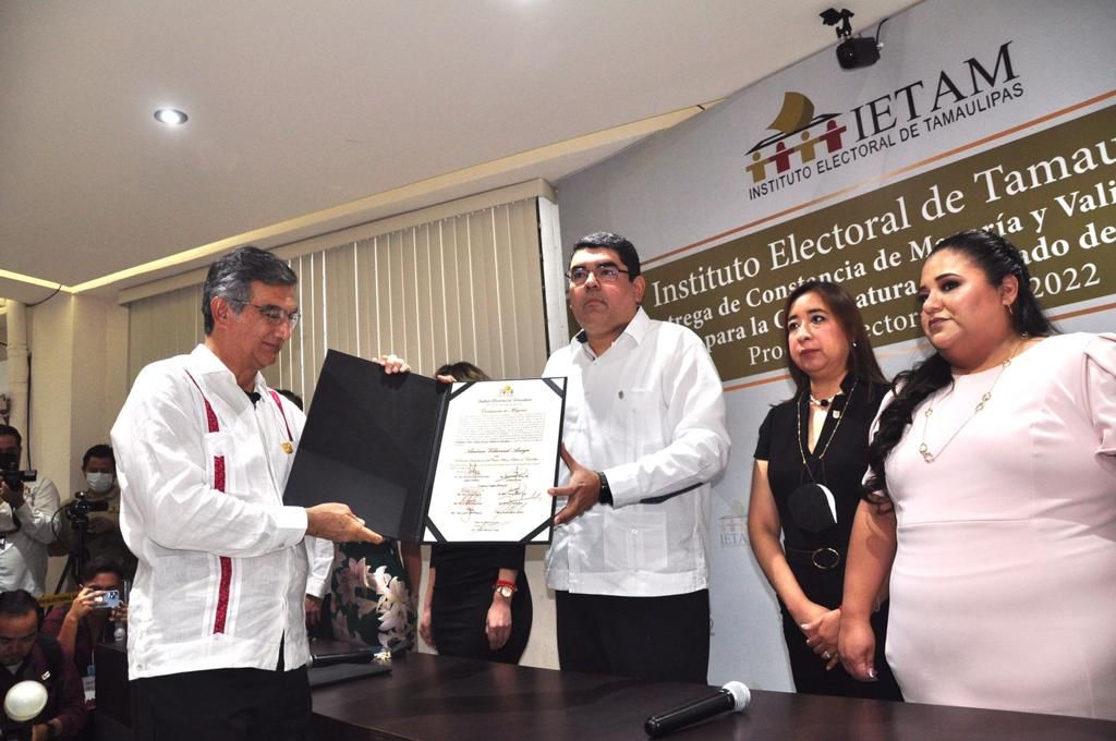 Cd. Victoria, Tam.- El doctor Américo Villarreal Anaya recibió la constancia que lo acredita como Gobernador Electo de Tamaulipas tras obtener 731 mil 383 votos, lo que representa el 51.54 por ciento de los sufragios emitidos en la jornada del 5 de junio.