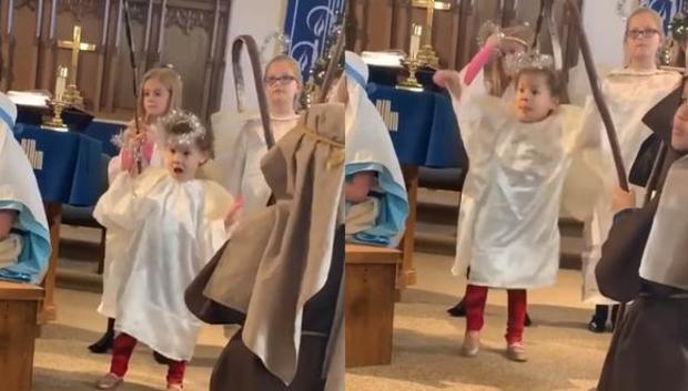 La niña estaba disfrazada de ángel y acompañada de los pastores, la virgen María y otros pequeños que representaban a los demás personajes del pesebre. En el fondo del video viral se escuchan himnos religiosos y villancicos para ambientar el momento del nacimiento de Jesús.