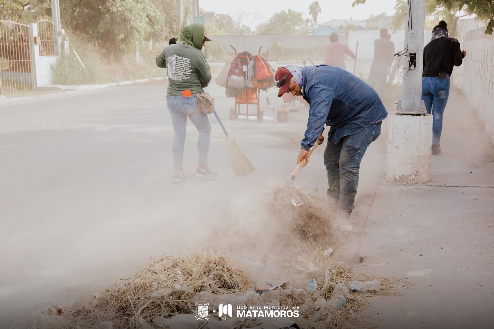 Este día, personal del área de Espacios Públicos del Gobierno de Matamoros se desplegó en diversos puntos de la ciudad para llevar a cabo trabajos de limpieza y mantenimiento urbano.
