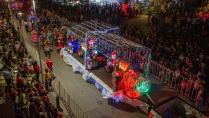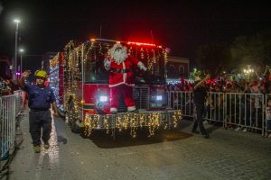 Hermosos carros alegóricos decorados con luces multicolores y transportando a duendes, árboles de navidad, cascanueces, renos, nacimientos vivientes, osos polares, dieron el toque de magia al desfile navideño que fue integrado por casi 50 contingentes encabezados por una unidad del Heroico Cuerpo de Bomberos, la cual trasladó a un Santa Claus, quien repartió dulces a los pequeños del hogar.