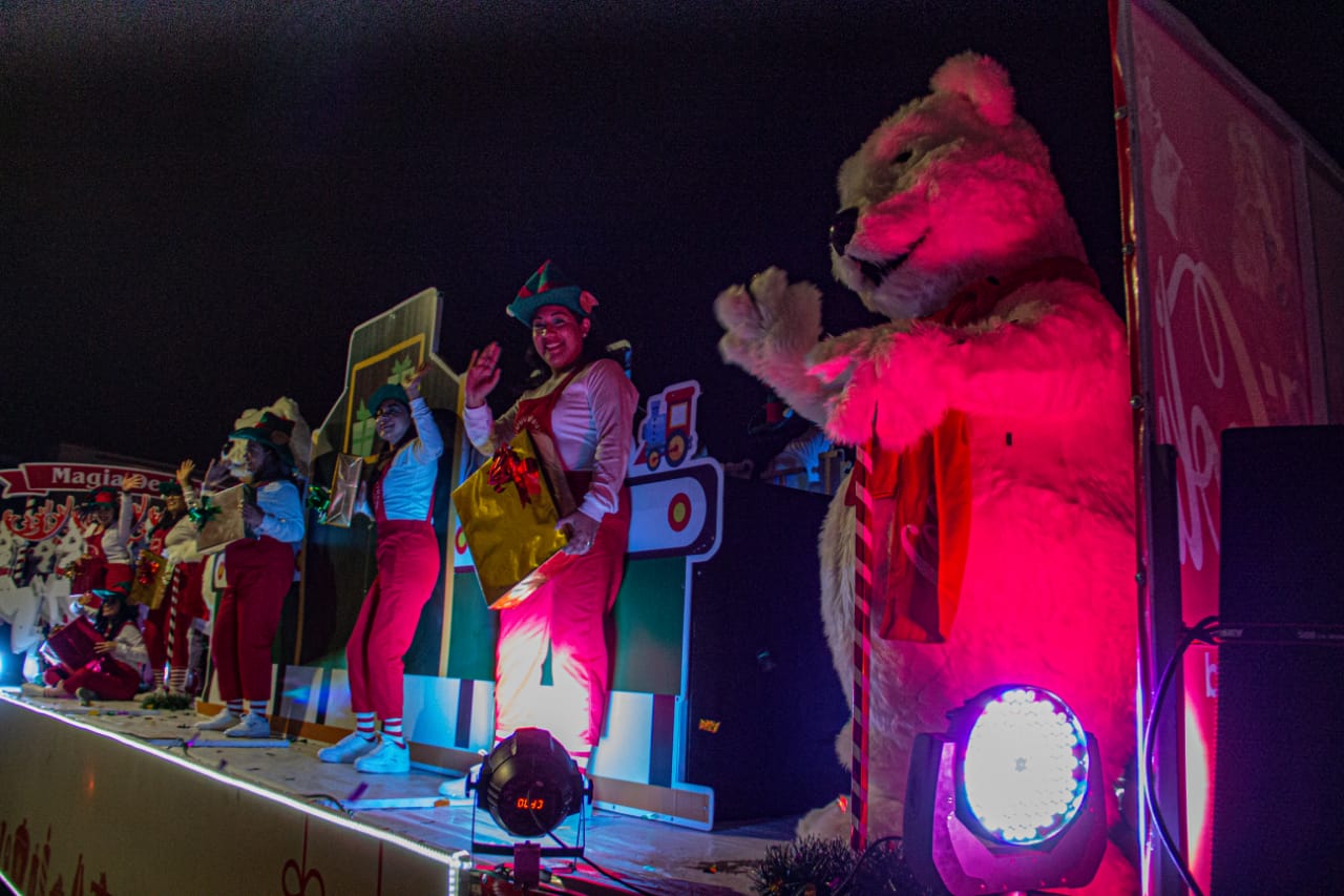 Hermosos carros alegóricos decorados con luces multicolores y transportando a duendes, árboles de navidad, cascanueces, renos, nacimientos vivientes, osos polares, dieron el toque de magia al desfile navideño que fue integrado por casi 50 contingentes encabezados por una unidad del Heroico Cuerpo de Bomberos, la cual trasladó a un Santa Claus, quien repartió dulces a los pequeños del hogar.