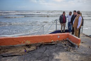 Funcionarios del Gobierno de Matamoros encabezados por el Alcalde Interino, Alejandro Cerezo Ruiz realizaron un recorrido de supervisión en la Playa Bagdad, en donde se registraron daños a causa de los fuertes vientos y el aumento en la marea, ocasionados por el frente frío número 10.