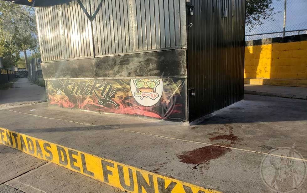 Dos casquillos de calibre .357 dañados, dos manchas grandes de sangre y perforaciones de bala en la lámina del puesto de comida denominado ‘Las Mentadas del Funky’, fue lo que quedó como huellas del penúltimo hecho violento del domingo, donde hombres armados asesinaron a dos personas.