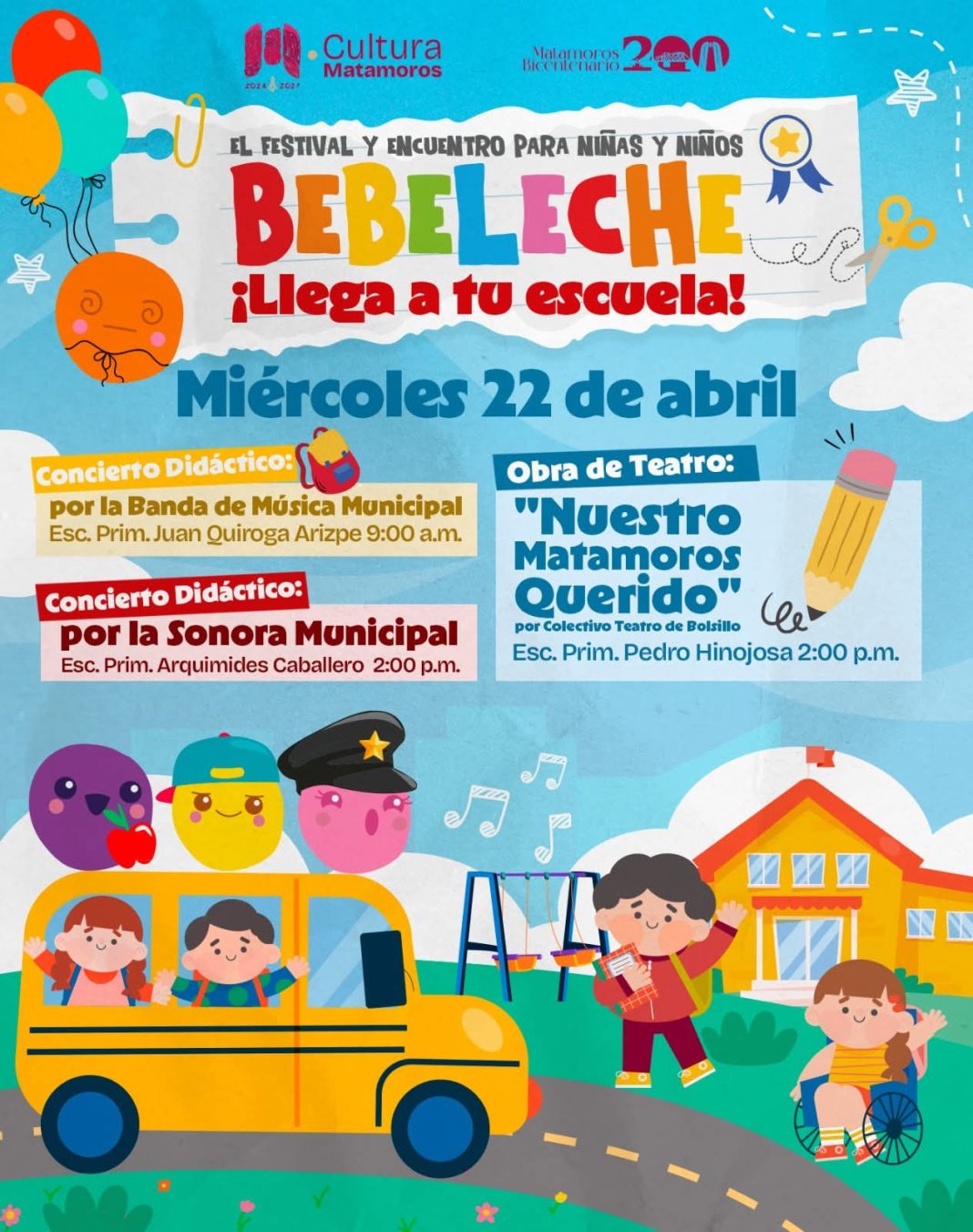 El Festival y Encuentro para Niñas y Niños Bebeleche continúa acercando el arte y la cultura a las escuelas de Matamoros.