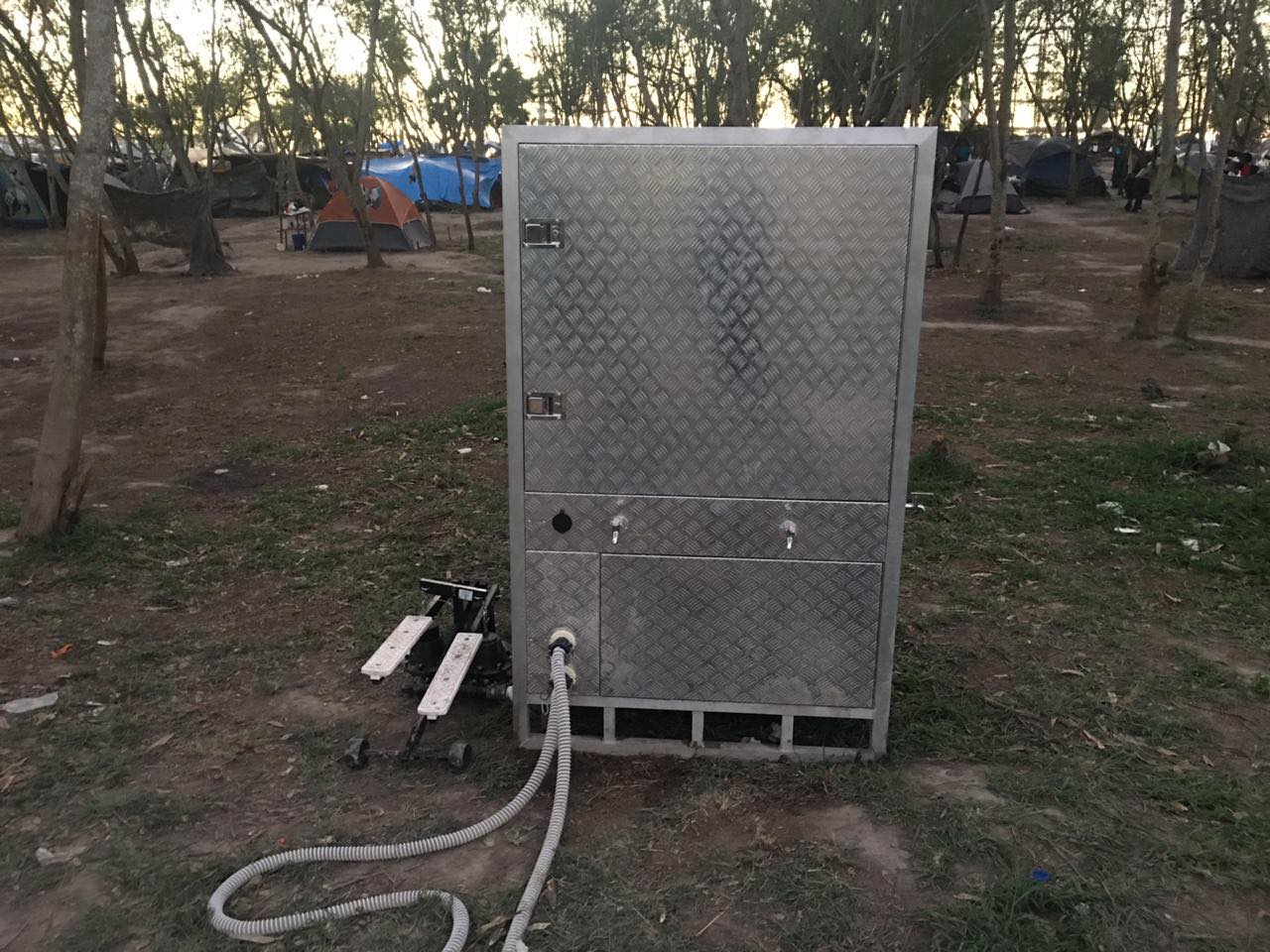 Después de varios intentos para poner los dos filtros de agua para migrantes en el bordo del Río Bravo, por fin el sistema esta funcionando.