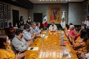 Con la representación del alcalde Mario Alberto López Hernández el secretario del Ayuntamiento, Carlos Ballesteros Galvez, dio la bienvenida  Presidente Nacional de la Casa del Poeta A.C., esto, durante la reunión en la que también estuvo presente el secretario de Educación, Cultura y Deporte, Raúl Guillermo Villasana Velázquez