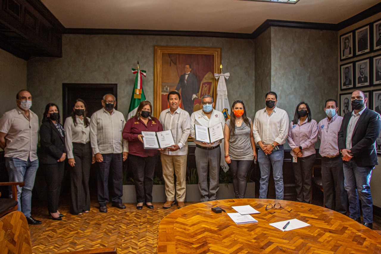 El alcalde Mario Alberto López Hernández encabezó la ceremonia de firma de convenio, en un encuentro con directivos de planteles educativos, celebrado en la sala “Benito Juárez” de Presidencia Municipal.