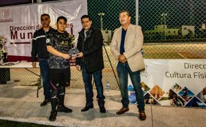 Con la representación del Alcalde Mario Alberto López Hernández, el secretario del Ayuntamiento, Carlos Ballesteros Galvez encabezó la ceremonia de premiación que se realizó en las canchas deportivas “Hugo Dante Martínez”, conocidas también como Canchas del Cambio.