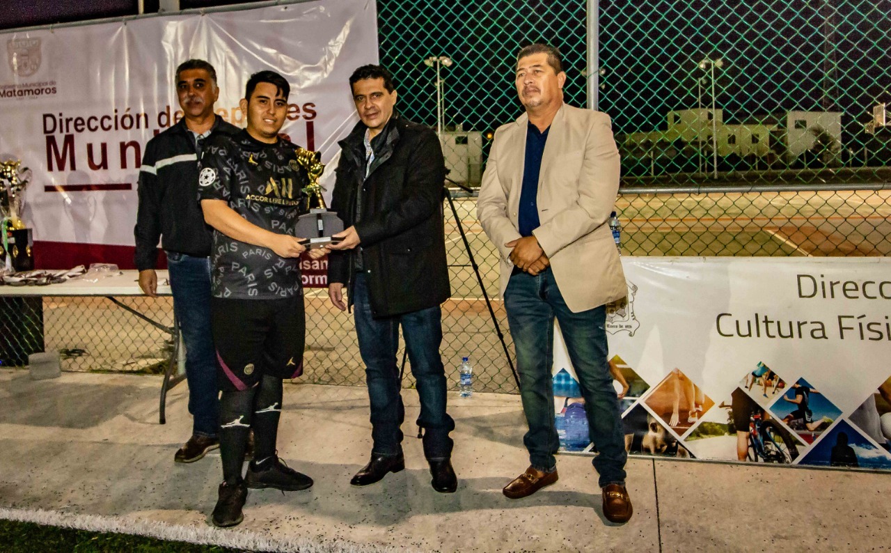 El Gobierno Municipal de Matamoros a través de la Dirección del Deporte entregó trofeos a los equipos ganadores del Torneo de futbol “Gorditos”, organizado con el propósito de fomentar una vida saludable entre personas adultas.