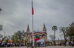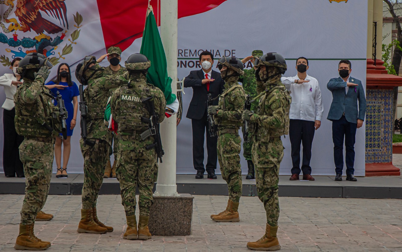 El izamiento de bandera correspondió a los elementos de la Marina; en tanto que la lectura de las efemérides, el valor del mes y juramento a la bandera, estuvo a cargo de directivos de la Secretaría de Desarrollo y Bienestar Social.