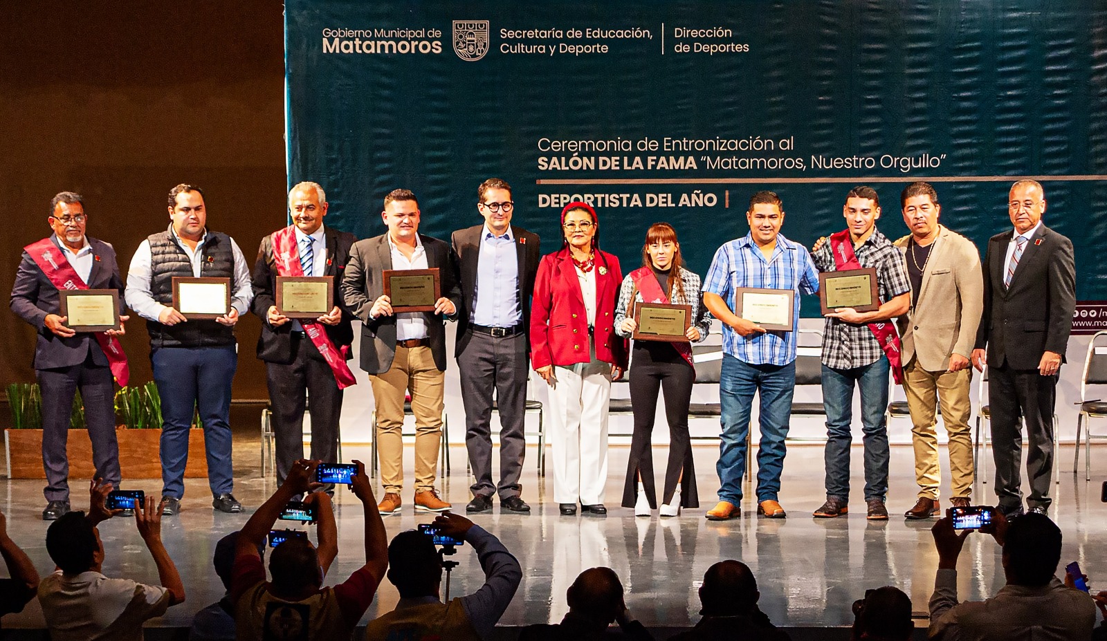 Al término de la ceremonia, los galardonados, autoridades municipales e invitados, se trasladaron al deportivo “Ing. Eduardo Chávez” para colocar las fotografías de los Entronizados al Salón de la Fama “Matamoros “Nuestro Orgullo”.
