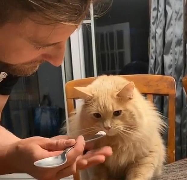 El video, que se cree que fue filmado en Canadá, comienza mostrando a un hombre que parece ser el dueño del gato ofreciéndole un poco de helado en la punta de una cuchara.