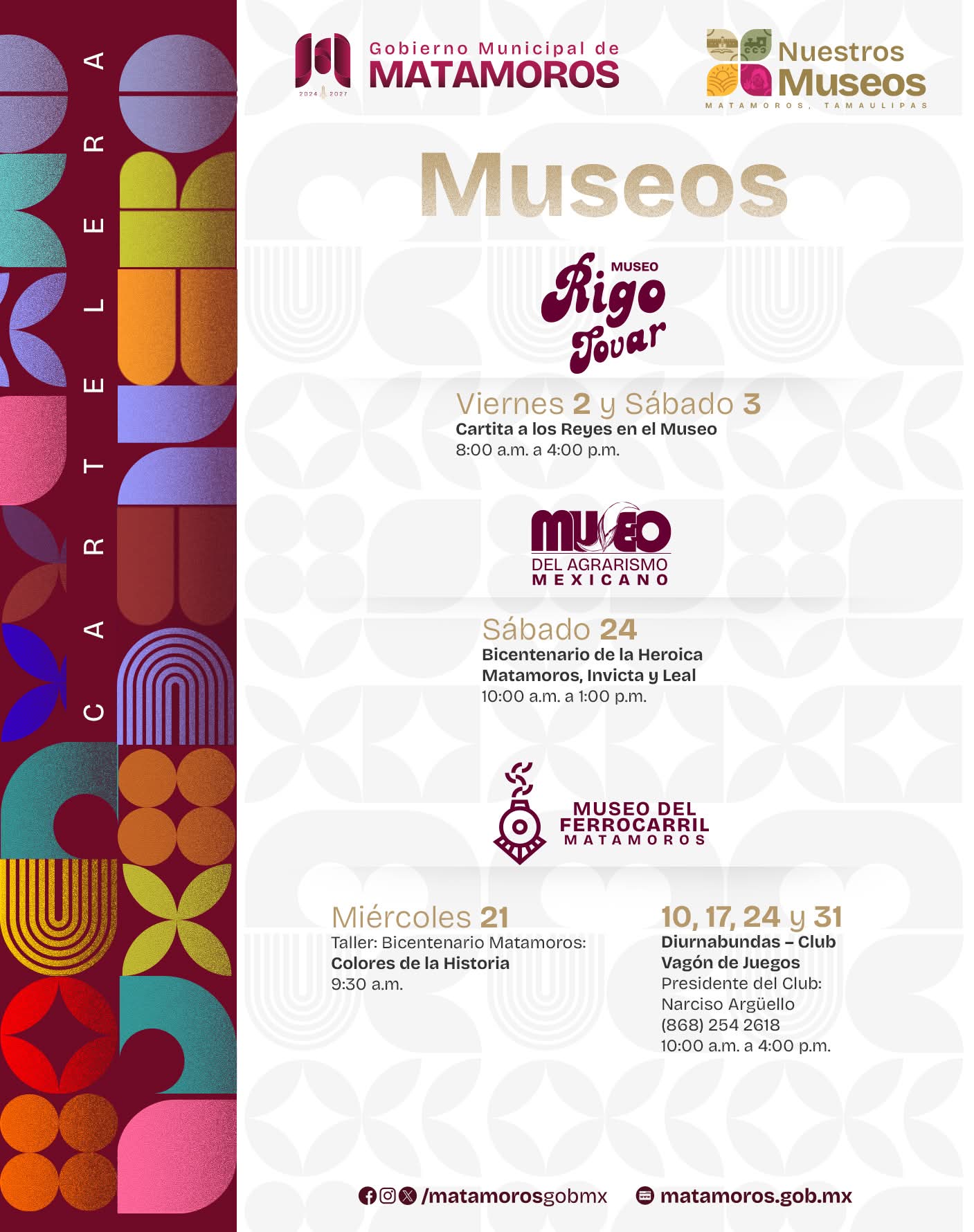 El Gobierno de Beto Granados continúa impulsando la cultura en Matamoros como un eje fundamental para la formación de nuevas generaciones, convencido de que el acceso al arte y al conocimiento fortalece el desarrollo social y educativo de la ciudad. A través de una amplia agenda cultural, la administración municipal promueve actividades que permiten a niñas, niños, jóvenes y adultos acercarse a expresiones artísticas que refuerzan la identidad y el arraigo cultural.